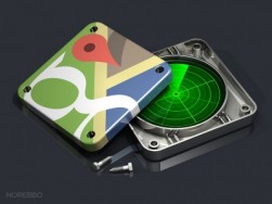 3d illustration of a disassembled Google Maps app icon showing a glowing green radar screen on the inside